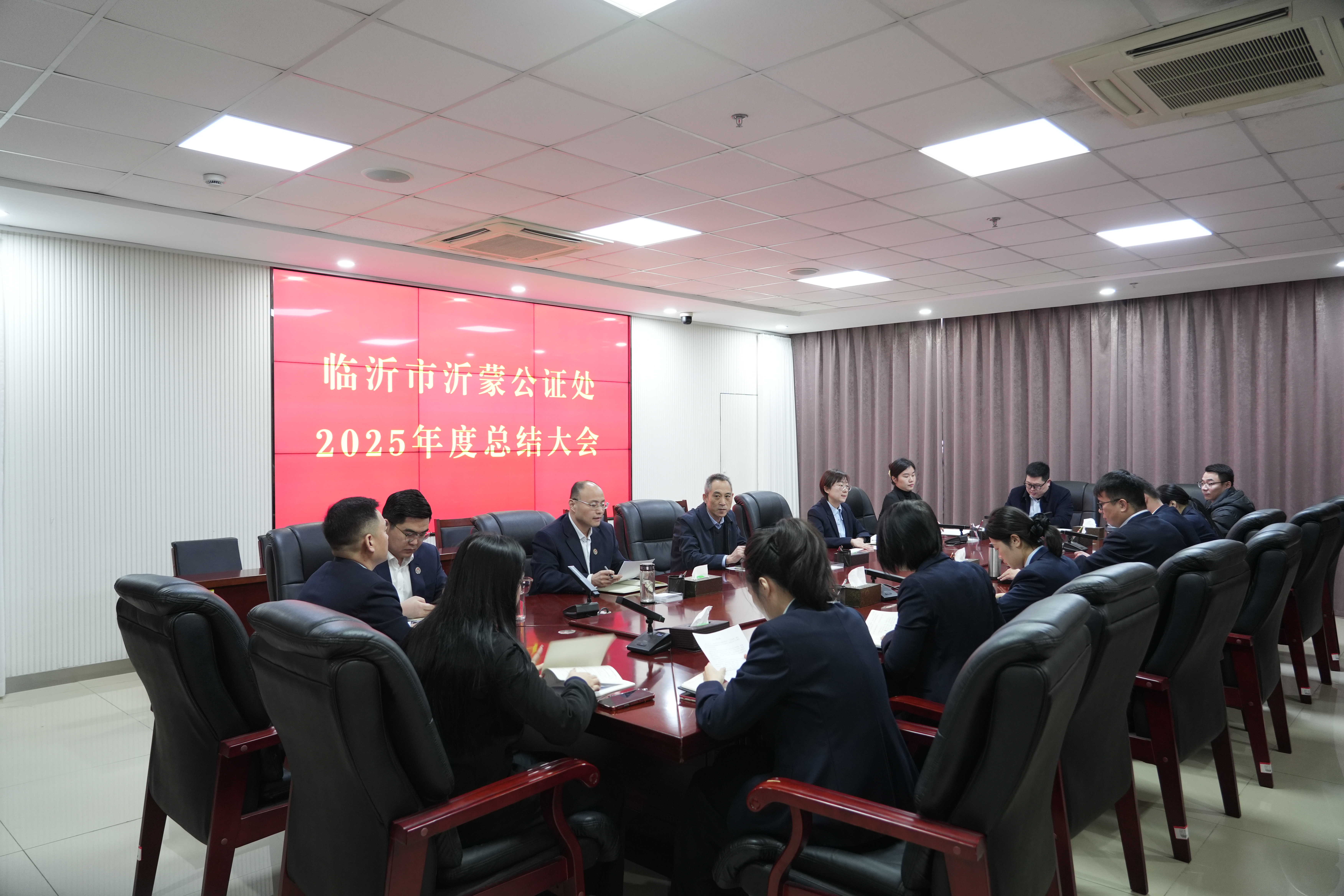 1月31日上午,临沂市沂蒙公证处召开2025年度工作总结大会。临沂市司法局党组成员、三级调研员张学山到会指导,公证处主任伏传宝主持会议并作工作报告,全体公证人员参会。